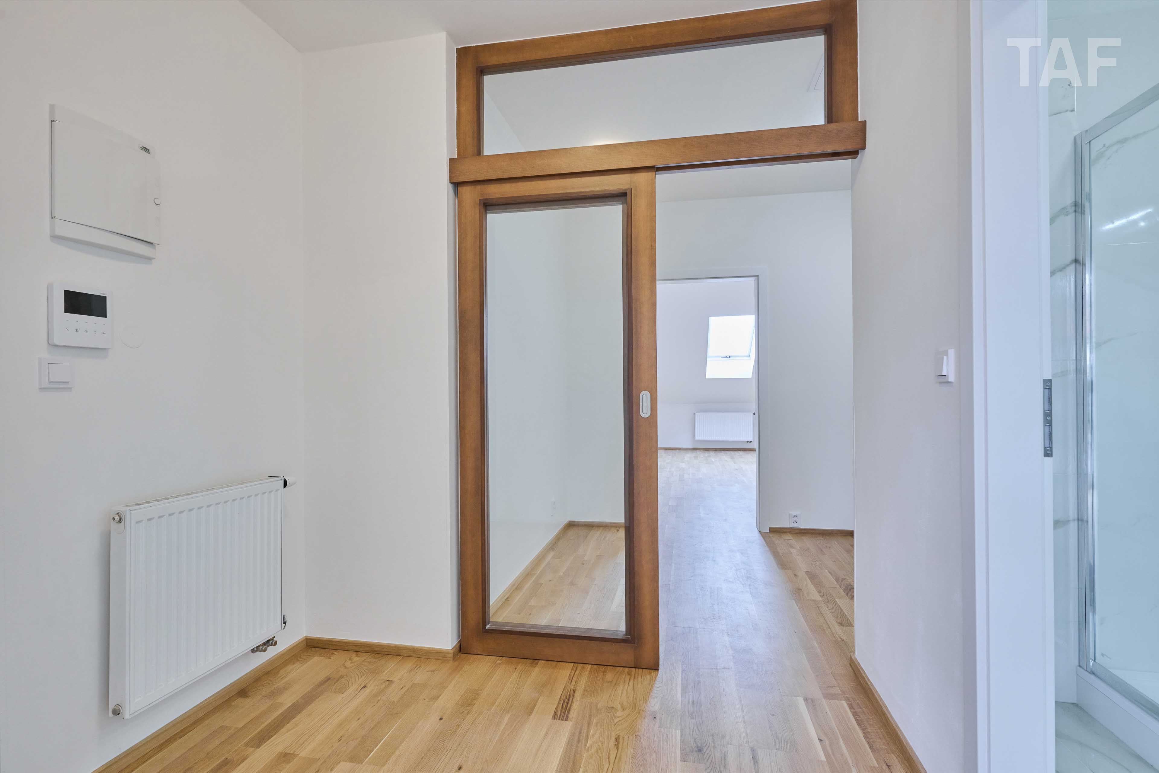 Dispozice nabízí dva samostatné pokoje a oddělenou kuchyň. Kvalitní dřevěné podlahy dodávají interiéru příjemnou atmosféru a nadčasový vzhled. Orientace na dvě světové strany zajišťuje dostatek přirozeného světla po celý den. Byt je ideální jak pro vlastní bydlení, tak jako investiční příležitost k pronájmu.